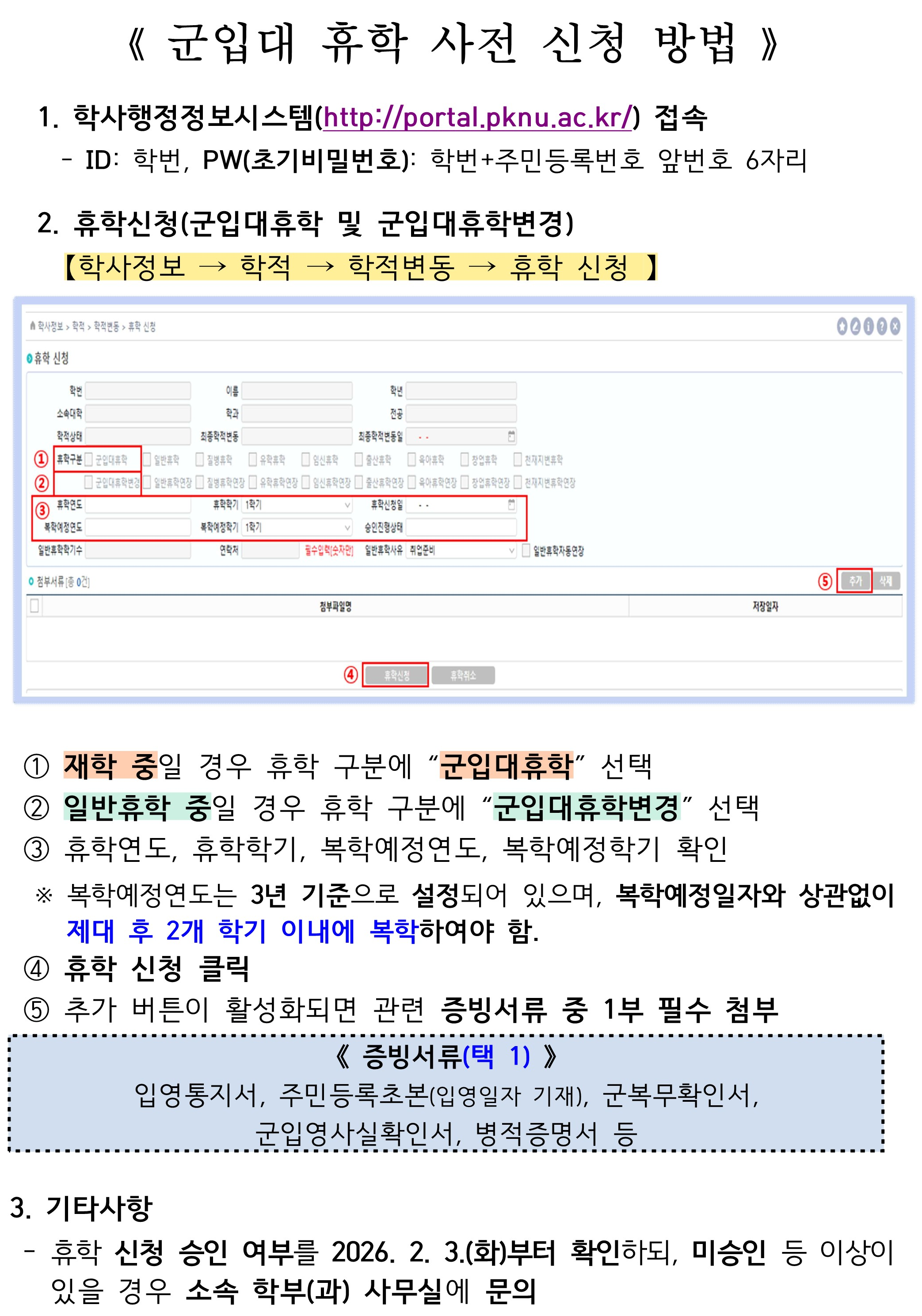 2026-1학기 군입대 휴학바구니제도(사전신청) 신청 안내