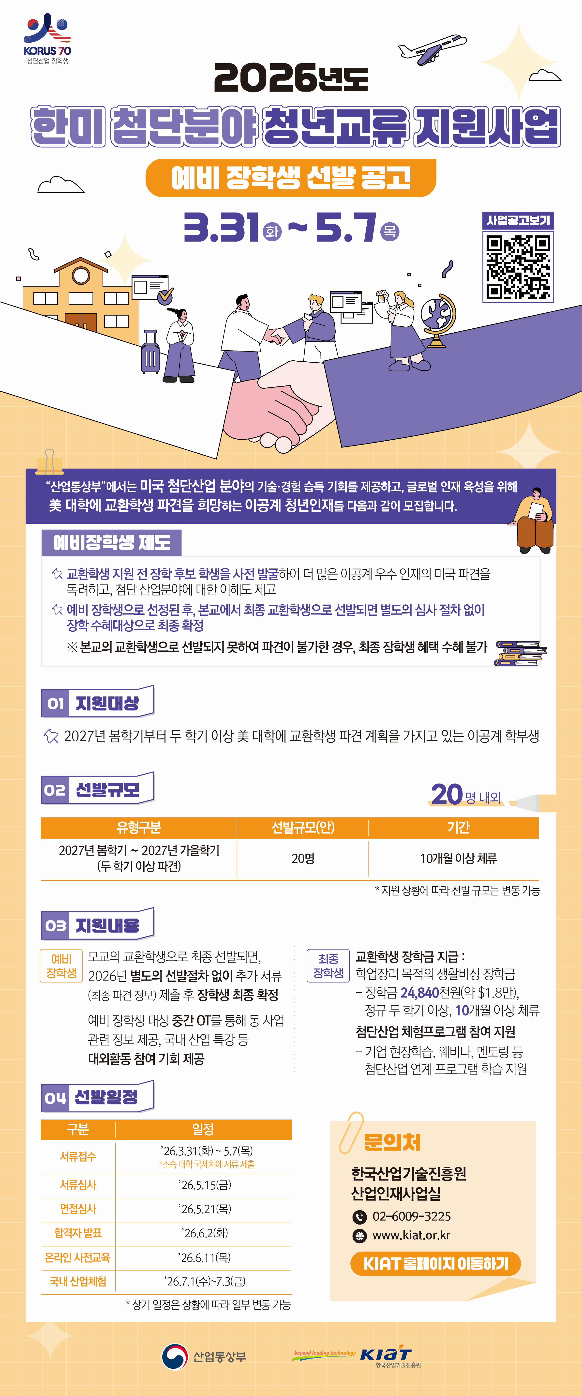 | [국제교류부]2026년도 한미 첨단분야 청년교류 지원사업 예비 장학생 선발 공고 | |||