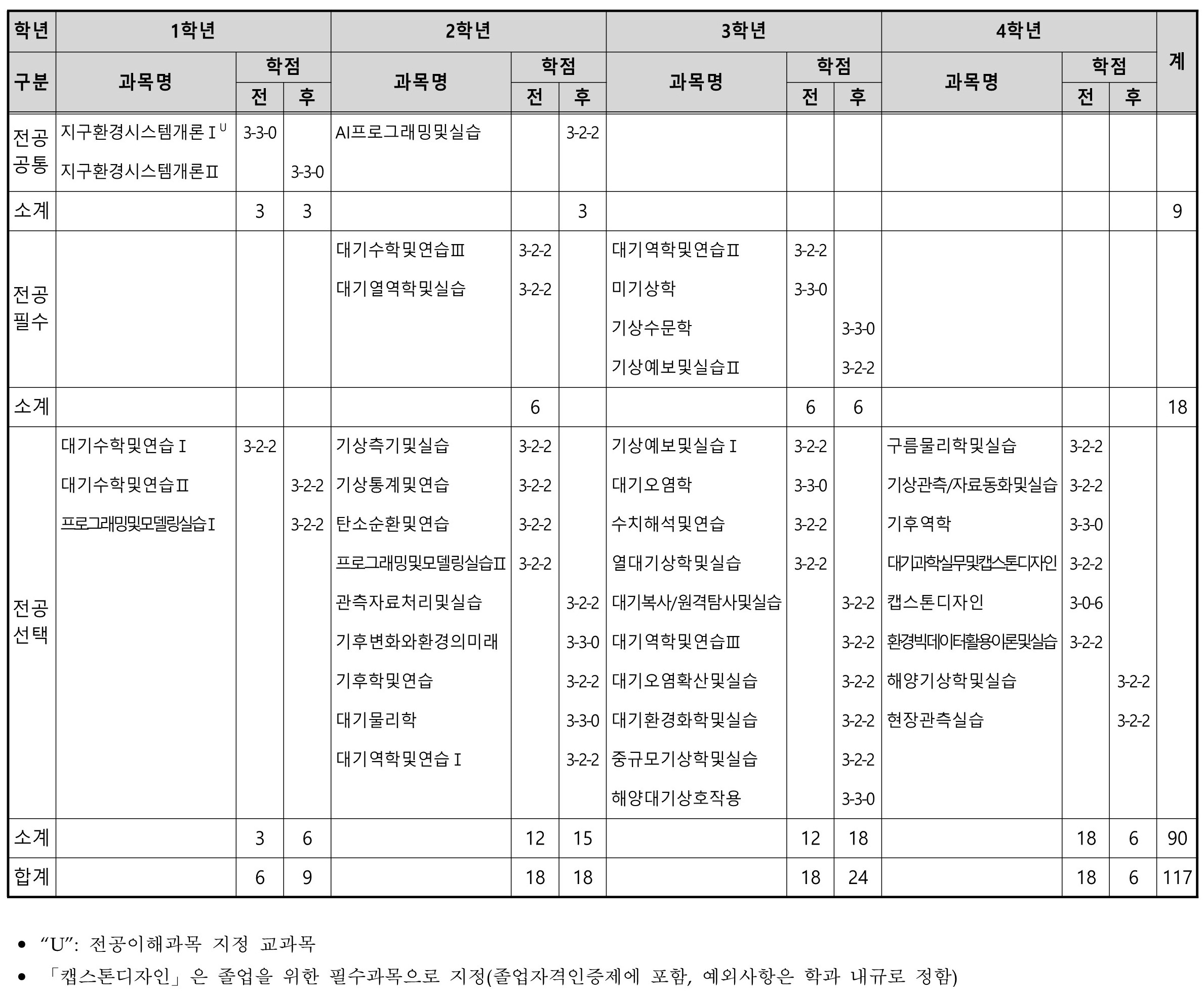 ※ 환경대기과학전공 교육과정(이전 학년도)