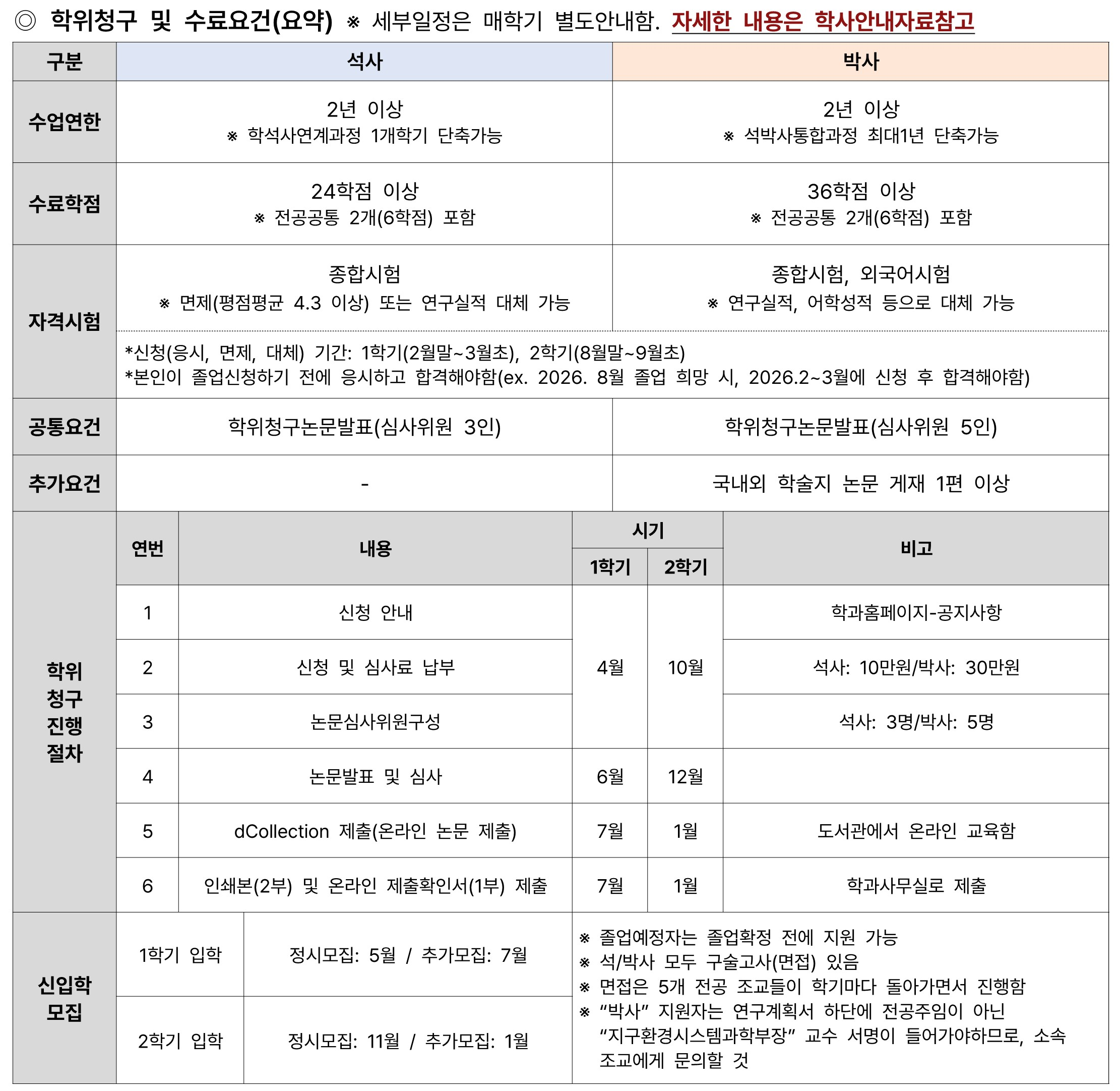 환경대기과학전공 대학원생 학사안내자료 다운로드(클릭)