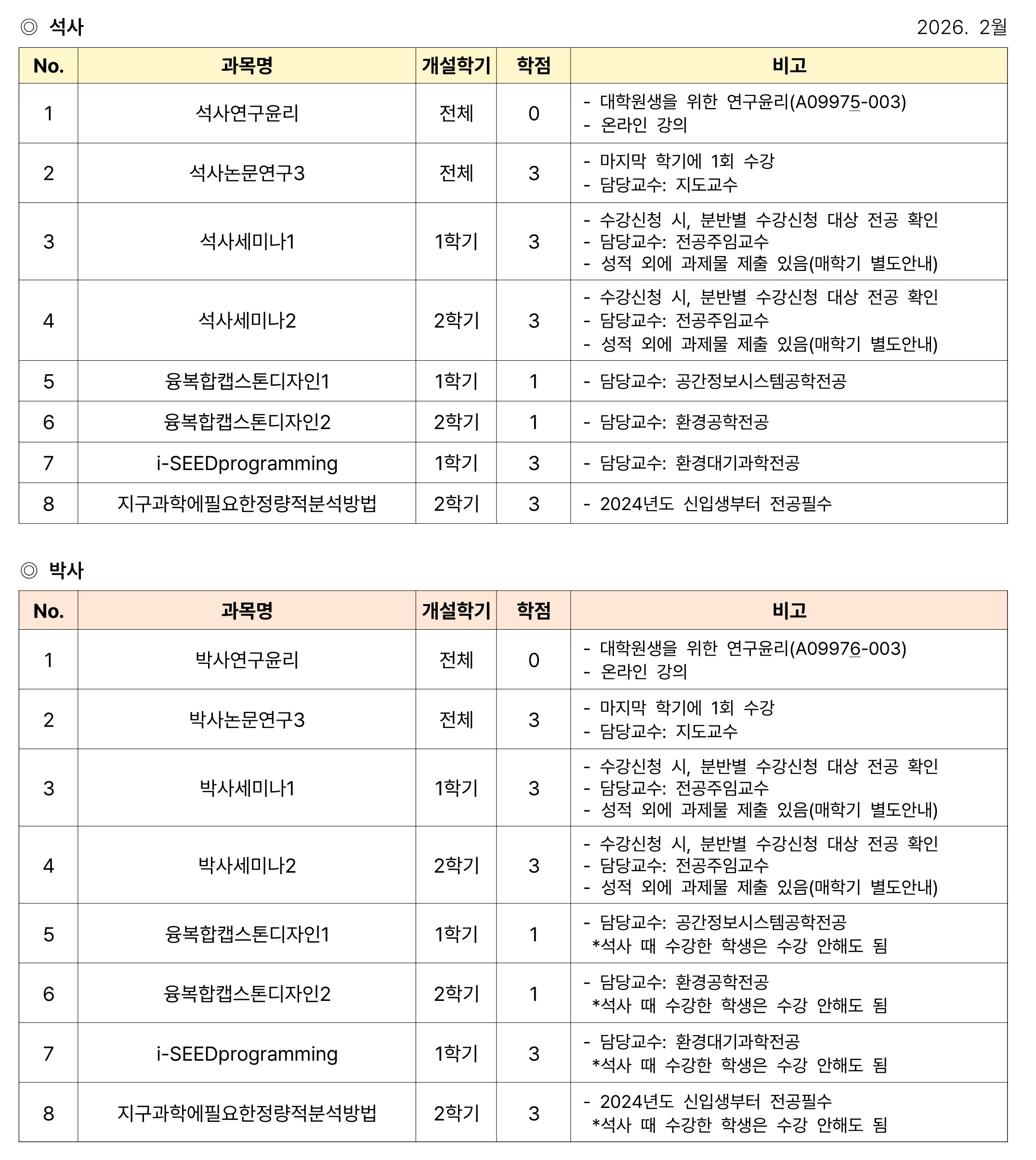 환경대기과학전공 대학원생 학사안내자료 다운로드(클릭)